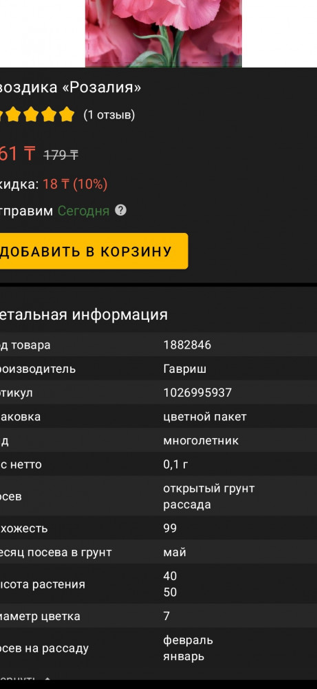 Гавриш Гвоздика «Розалия»3+1 +4 всхожесть однолетник