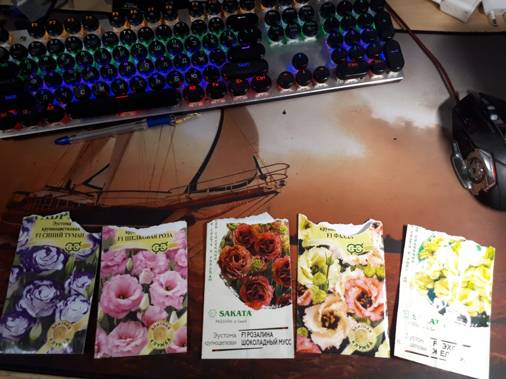 Отзыв #2 сегодня, 5.01.2021 появились первые всходы. Взошли 3 ростка эустомы "синий туман", по 1 ростку сортов: "фалда", "шелковая роза", "шоколадный мусс". Прошло 9 дней со дня посадки. Прорастают в течении 7-14 дней, жду всходов еще. Как правильно сажать читайте мой первый отзыв выше. Пока что не взошел 1 сорт "эхо желтая" буду ждать его. Надеюсь на лучшее. Удачных вам всходов! Буду добавлять отзывы и дальше.