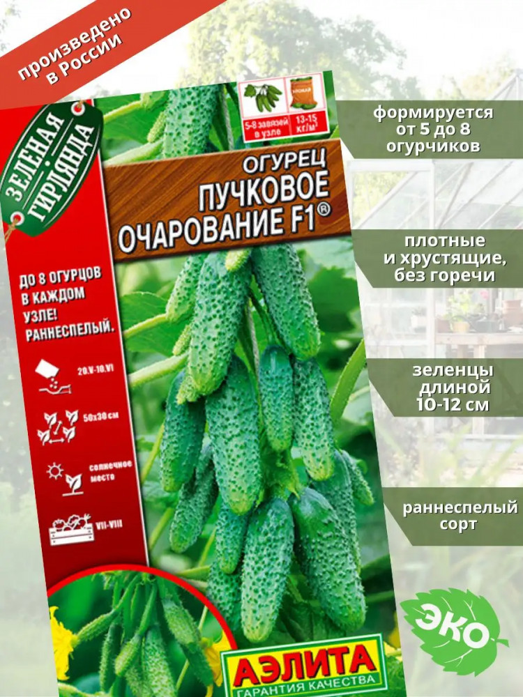 Аэлита Семена огурца «Пучковое очарование F1»+14 высокая урожайность соответствие сорту легкость выращивания низкая всхожесть