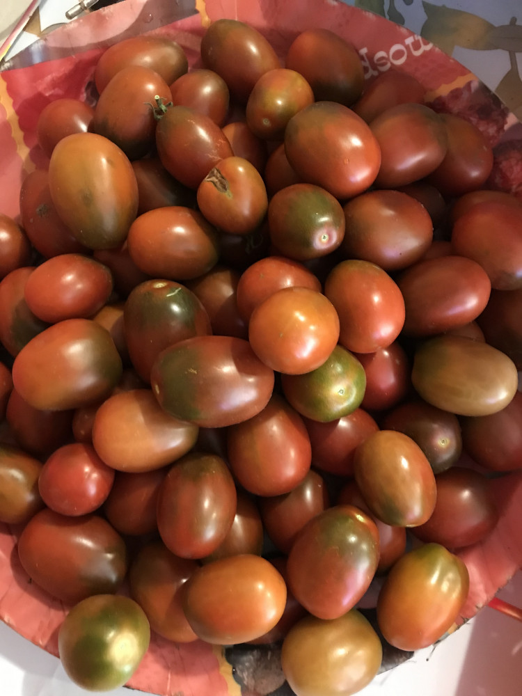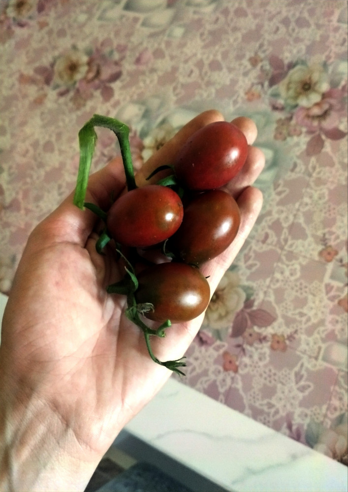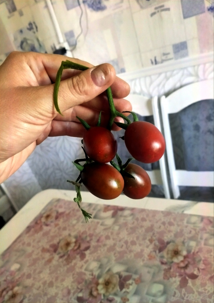 Отличный сорт, урожайный, цвет конечно не чёрный, но это не имеет значения, использую для вяленных помидоров, все помидорки почти одного размера и их очень много.