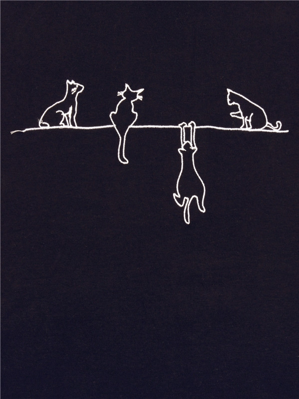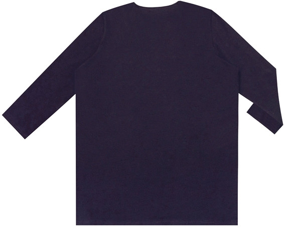 Приятный средней плотности трикотаж, рисунок вышитый (что выигрышно по сравнению с текстильным рисунком), на размер 48 хорошая слегка свободная посадка, красивый ворот. После стирки не растянулась.