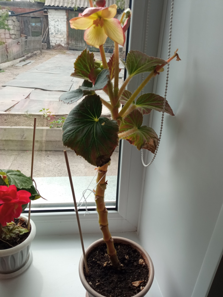 Вот такая бегония у меня выросла))) через раз махровые цветки и простые. Снизу листье нет, вероятно из-за нехватки питания, т.к. зимой она у меня росла в крохотном горшочке. Надеюсь, что за лето обрастает листьями.