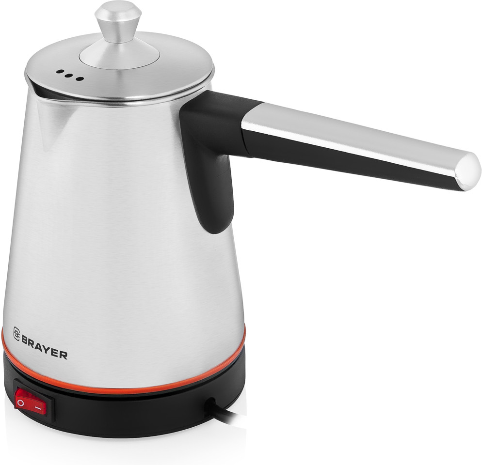 Brayer Кофеварка BR1140В данный момент этот товар отсутствует в продаже. Возможно, у нас найдется аналогичный или похожий товар здесь. Электрическая турка Brayer BR1140 заметно облегчит и ускорит процесс приготовления кофе по-восточному. Турка имеет металлический корпус и складную ручку, что значительно облегчает уход за прибором. Функция защиты от включения без воды, поможет предотвратить выход из строя турки по невнимательности. |