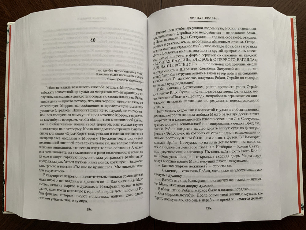Литературный критик Галина Юзефович сказала, что каждый новый роман Гэлбрейта о Корморане Страйке лучше предыдущего. В принципе, я с ней согласна. Но я вообще поклонница Роулинг, так что не могу быть объективной. «Дурная кровь» — пока ещё и самый толстый из всех романов этой серии. Но, если честно, эта книга — из тех, что читаешь, и уж очень не хочется, чтобы она кончалась.