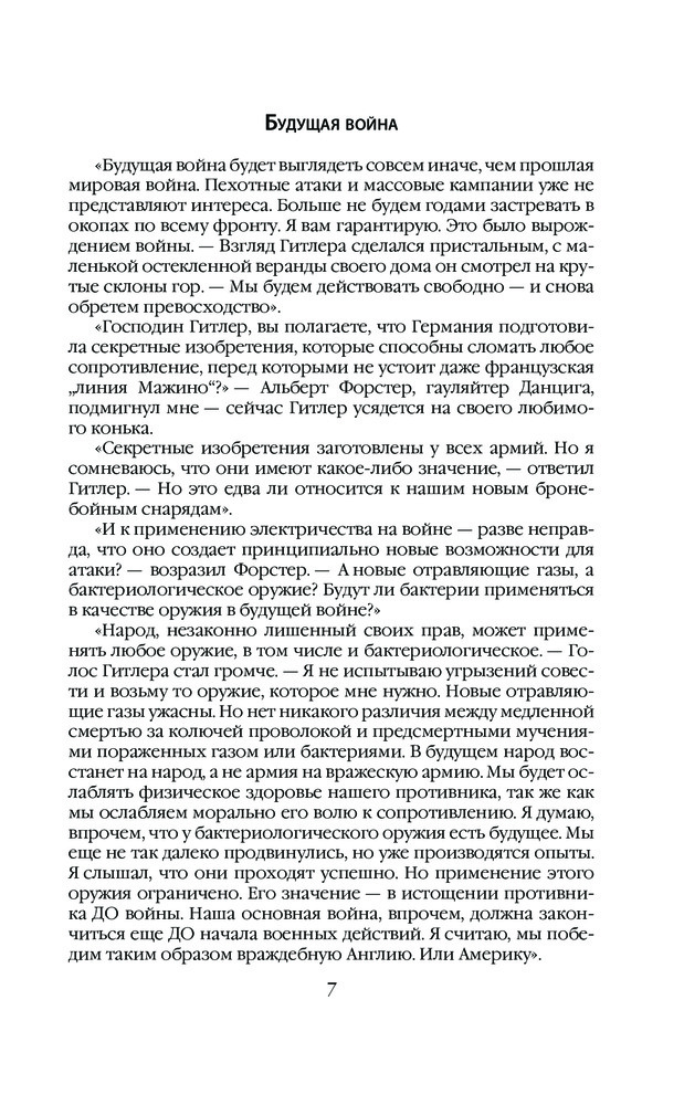 Говорит ГитлерВ данный момент этот товар отсутствует в продаже. Возможно, у нас найдется аналогичный или похожий товар здесь. Серия: Взлет и падение Третьего Рейха Г. Раушнинг был президентом сената Свободного города Данцига и состоял в ближайшем окружении Гитлера. Разочаровавшись в нацизме, этот бывший сподвижник фюрера опубликовал в Лондоне книгу «Говорит Гитлер», которая полностью состоит из дословно воспроизведенных речей в узком кругу посвященных — случай в практике тайных обществ редчайший. |
