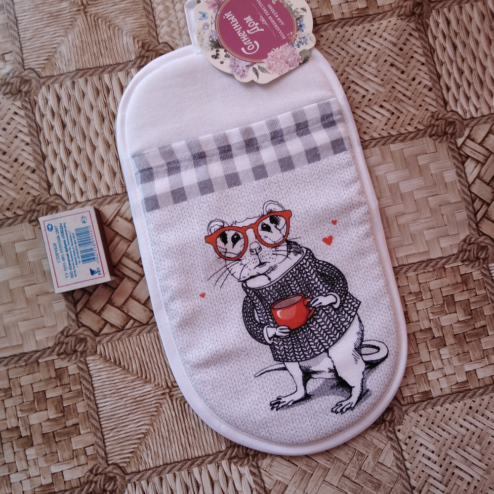 Оказалась прихватка с карманчиком (отделение для ладони). Решила, что такую милую вещь использовать на кухне расточительно. Пользуюсь вместо кармашка для мелочей, очень удобно!