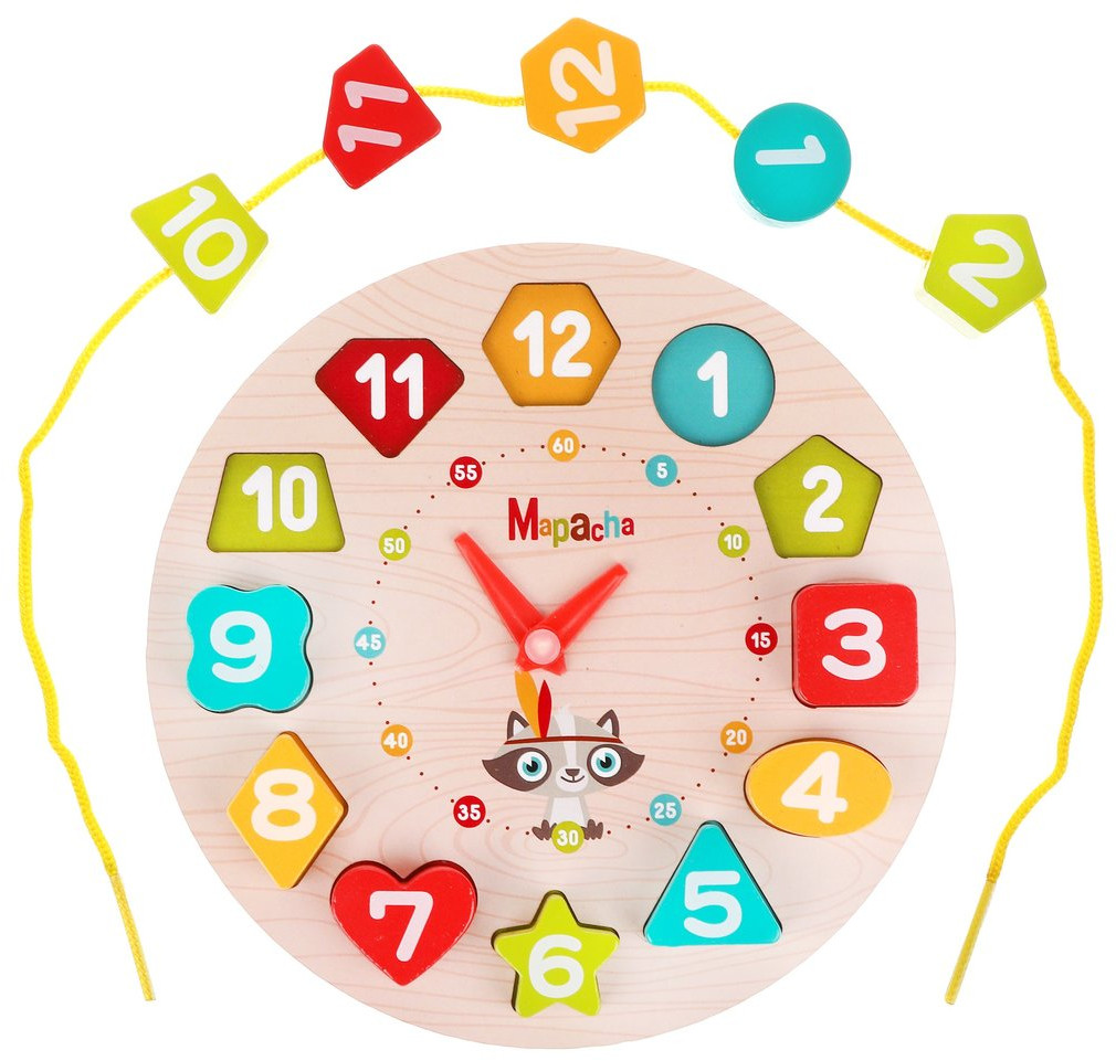 💳 Оплатить за товар можно при получении 🇰🇿 Есть бесплатная доставка по Казахстану от 1 дня 🎁 Копите бонусы с каждой покупки Эти часы помогут познакомить ребенка с понятием времени и способами его измерения. Классический циферблат часов дополнен мини-циферблатом с указанием минутных делений. Основные цифры в пределах двенадцати нанесены на фигурные вкладыши, они помогут малышу тренировать логику и быстрее запомнить расположение цифр на циферблате. Сами вкладыши с цифрами можно использовать и как бусины. Малыш может потренировать мелкую моторику, нанизывая их на шнурок. |