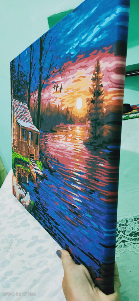 Сам холст понравился, хорошо натянут, краски плохие, быстро сохнут приходится разбавлять водой, 8номер почти сразу засох пришлось использовать 11,тоже оттенок синего, цифры не четкие на самом холсте, например номер 7 похож на 1 или 17 на 11, в общем приходится исправлять потом, в целом качество на 3 из 5, так, когда делать нечего можно по раскрашивать, и еще края обязательно прокрашивайте!!! иначе картина будет выглядеть не "доделанной" интересно почему изготовитель этого не учёл?