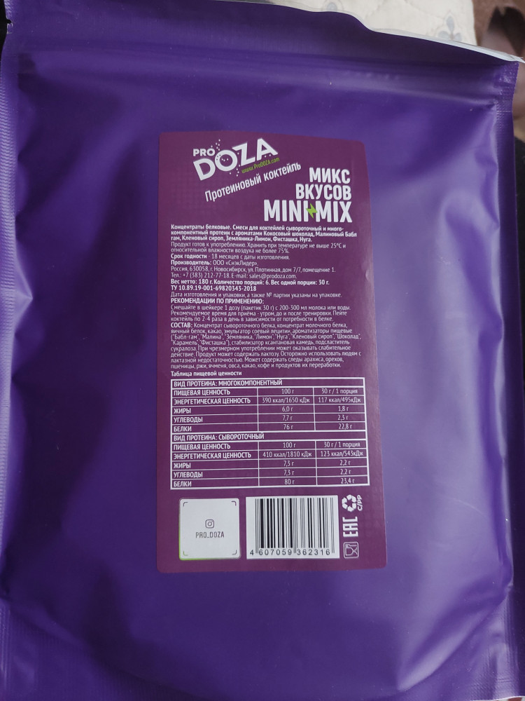 ProDOZA Набор протеиновых коктейлей «MiniMix»В данный момент этот товар отсутствует в продаже. Возможно, у нас найдется аналогичный или похожий товар здесь. Мини-набор из 6-ти порционных пакетиков высококачественного протеина с разными вкусами. Сделано из европейского сырья. Вкусы: кокосовый шоколад (многокомпонентный протеин), кленовый сироп, малина-баблгам, земляника-лимон, нуга, фисташка (сывороточный протеин). Обладает высокой биологической ценностью. Этот белковый коктейль отлично подходит и для похудения, и для набора мышечной массы. Протеин позволяет быстро восстановить мышцы после тренировки, стимулирует их рост, замедляет процессы катаболизма. |