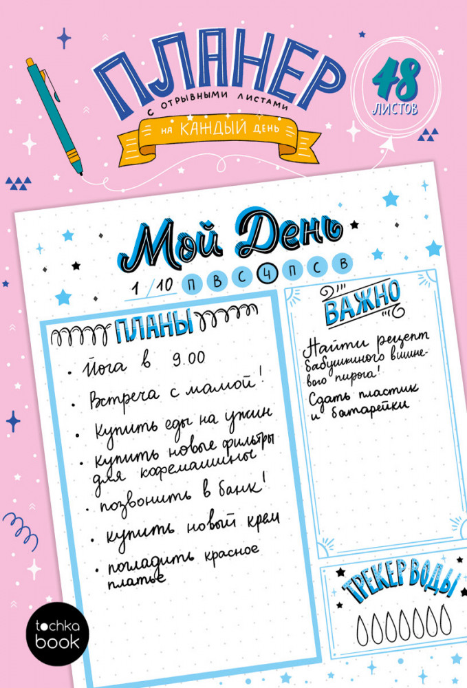 Планер-точкабукВ данный момент этот товар отсутствует в продаже. Возможно, у нас найдется аналогичный или похожий товар здесь. Серия: Точкабук Планер с отрывными листами поможет фиксировать все ваши задачи на текущий день. Лист разделен функциональные зоны и имеет линовку в точку-всё это делает планирование максимально удобным. В планере 48 двухсторонних отрывных листов, поэтому его хватит на три месяца. |