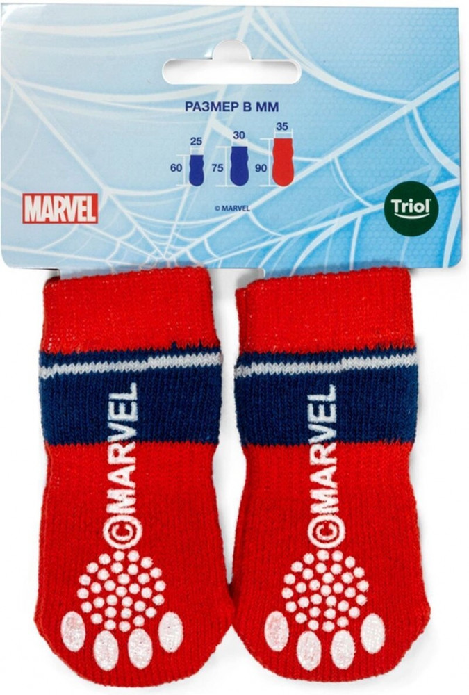 Яркие носочки с изображением Человека-паука — не только стильный, но и полезный аксессуар для вашего питомца. Такие носочки ограждают интерьер от когтей любимца и, благодаря противоскользящему покрытию, позволяют четвероногому питомцу с комфортом передвигаться по паркету, кафелю и другим скользким покрытиям. Теплые, легкие и функциональные, эти носочки также отлично подойдут для согревания лапок питомца в зимний период, если их одеть под ботинки.
