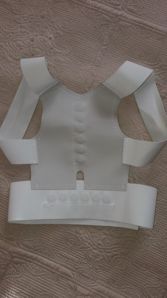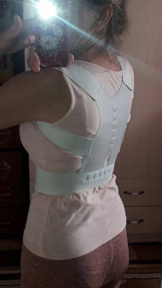 отличная вещь,ощущение будто ктото тянет за плечи назад и спина сама выгибается правильно..единственно,летом в нем жарковато,в прохладное время можно смело носить под одеждой и кайфовать👍🥰