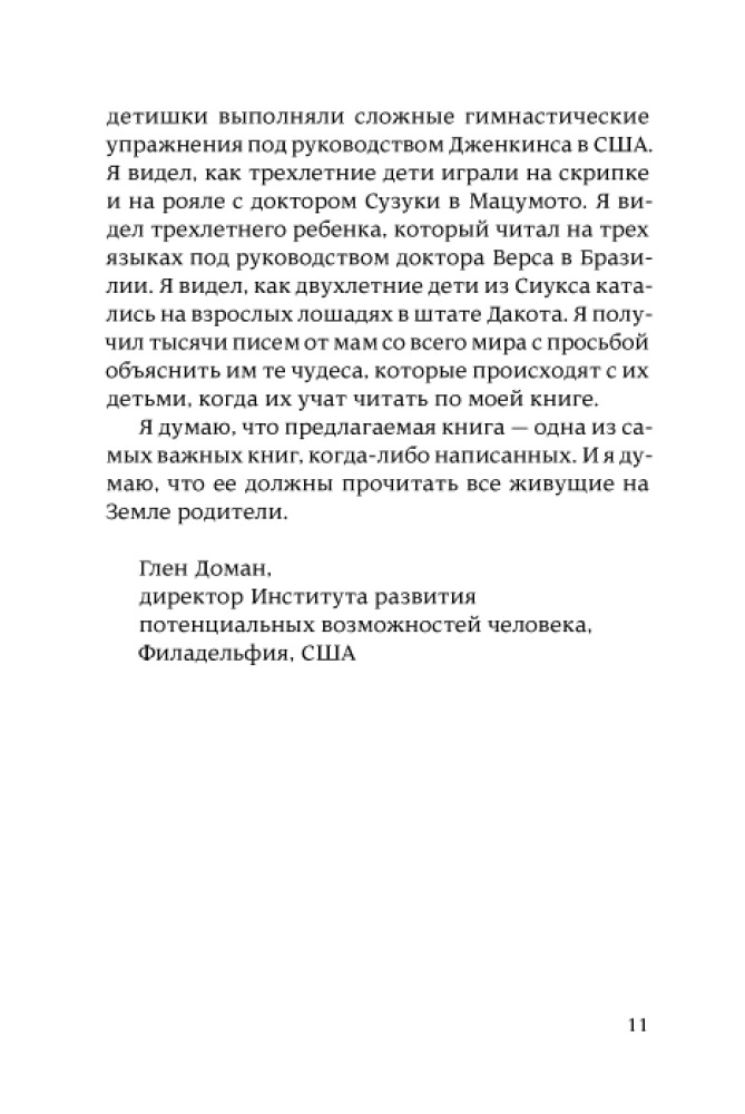 Отличная книга! Советую всем кто планирует стать родителями или у кого есть маленькие дети. Эта книга поможет Вам более грамотно подойти к развитию Вашего ребенка. Это не пошаговая инструкция как надо воспитывать и развивать ребенка. Однако здесь представлены различные рекомендации, применение которых поможет развить в ребенке различные таланты и способности. Ничего сложного в применении этих рекомендаций нет, все что здесь советуют можно с легкостью применить в обычной жизни. Книга читается легко, написано все доступным языком. Советую.