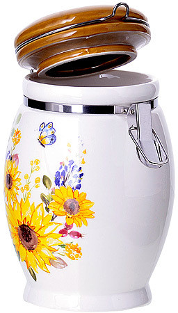 Loraine Банка для сыпучих продуктовВ данный момент этот товар отсутствует в продаже. Возможно, у нас найдется аналогичный или похожий товар здесь. Серия: Подсолнух Банка для сыпучих продуктов LORAINE выполнена из качественной доломитовой керамики с красочным рисунком . Гладкая и ровная поверхность обеспечивает легкую очистку. Банка прекрасно подойдет для хранения различных сыпучих продуктов: специй, чая, кофе, сахара, круп и многого другого. Крышка плотно закрывается с помощью металлического зажима клипсы, дольше сохраняя свежесть продуктов. |
