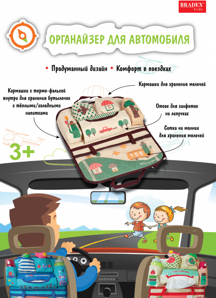 Bradex Органайзер на спинку сиденья автомобиляВ данный момент этот товар отсутствует в продаже. Возможно, у нас найдется аналогичный или похожий товар здесь. Детская сумка-органайзер для автомобиля станет вашим постоянным спутником в поездках с ребенком. Несмотря на свой довольно компактный размер, органайзер оснащен всем необходимым: кармашками для мелочей и специальными отсеками с термо-фольгой для поддержания температуры бутылочек, отсеком для салфеток на липучках и сеткой на молнии для небольших вещей. Кроме этого, предусмотрены регулируемые ремни в верхней и нижней части органайзера для крепления к подголовнику и сидению, а также небольшие удобные ручки для переноски. Органайзер отличается ярким дизайном, веселыми принтами на кармашках и контрастной отделкой. Возьмите органайзер в дорогу один раз и вы больше не сможете без него обходиться! |