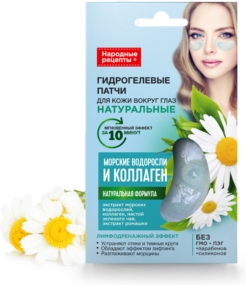 Народные рецепты Патчи для кожи вокруг глаз гидрогелевые «Морские водоросли и коллаген»