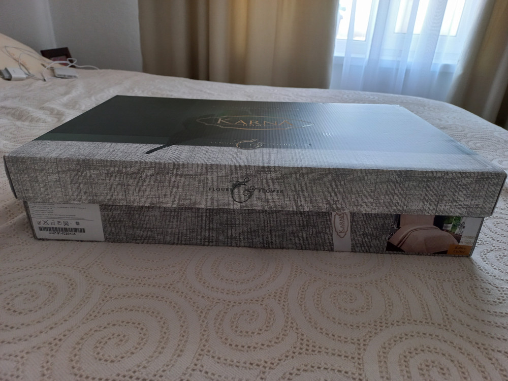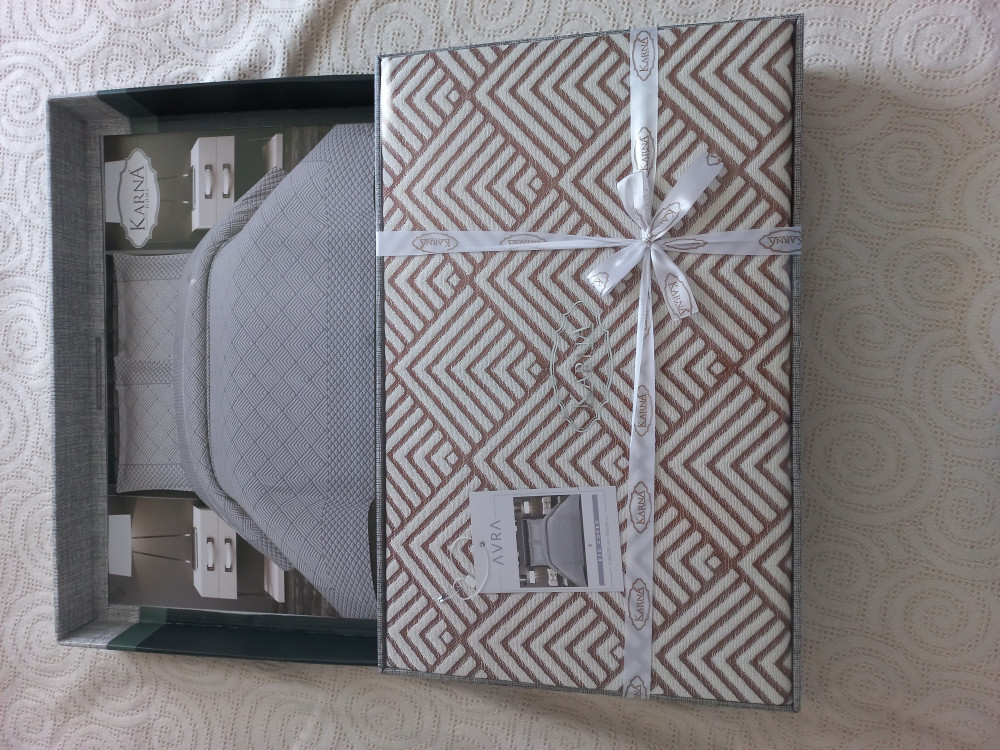 Неплохое покрывало. Оно без подклада, но материал плотный. К качеству покрывала и наволочек претензий нет, пошито идеально. Все строчки ровные, нитки не торчат. Есть небольшой запах сразу после распаковки. Ну и упаковка для подарка в самый раз. В общем я больше довольна покупкой, чем нет.