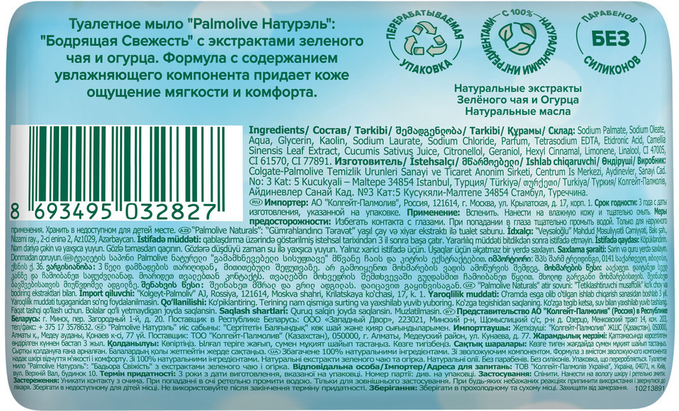 Palmolive Мыло туалетное с экстрактами зеленого чая и огурца «Бодрящая свежесть»