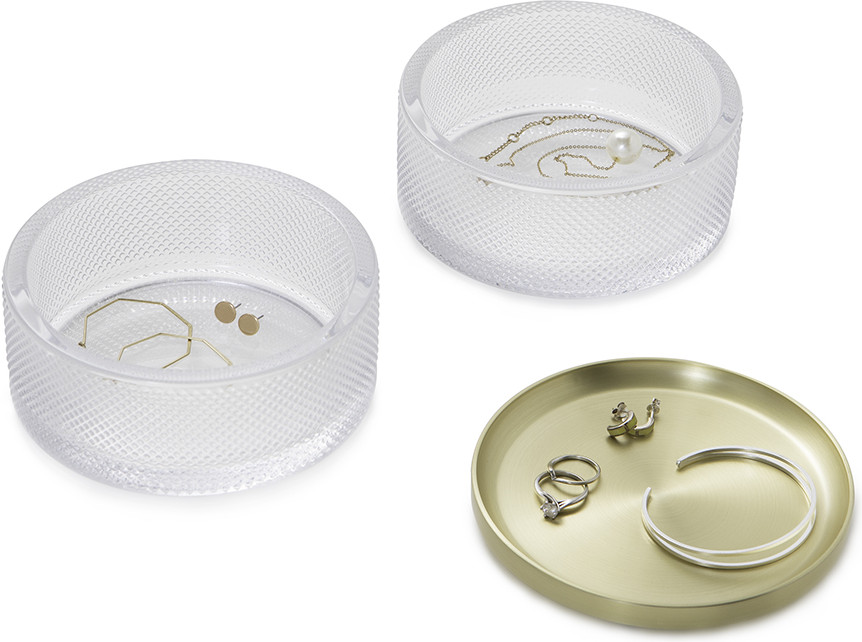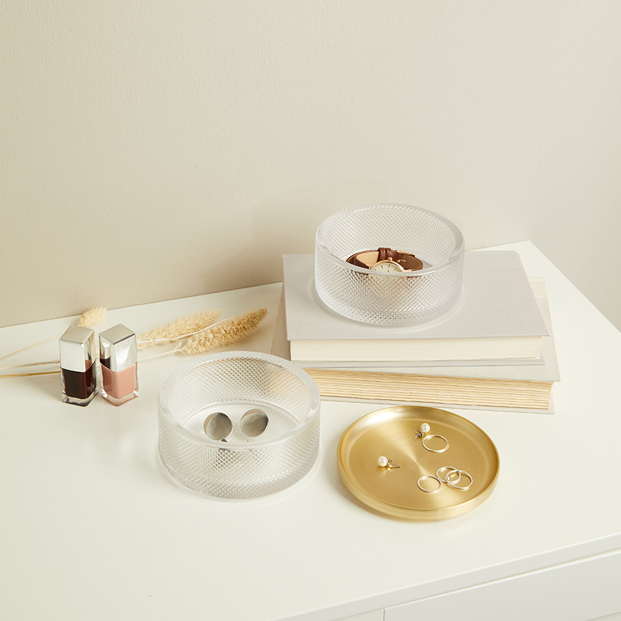 Шкатулка имеет тканевую подкладку и мягкое дно, которые защищают украшения и столешницу от царапин. Металлическая крышка служит лотком для хранения и демонстрации украшений, которые используются чаще других. Секции ставятся одна на другую, поэтому шкатулка не занимает много места.