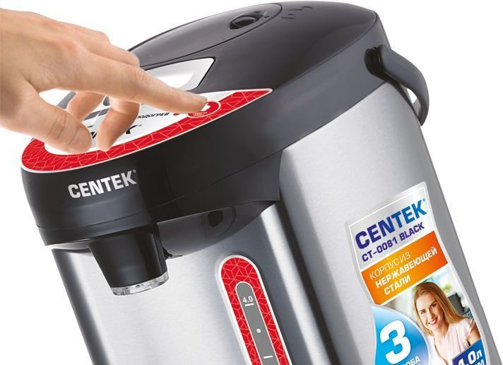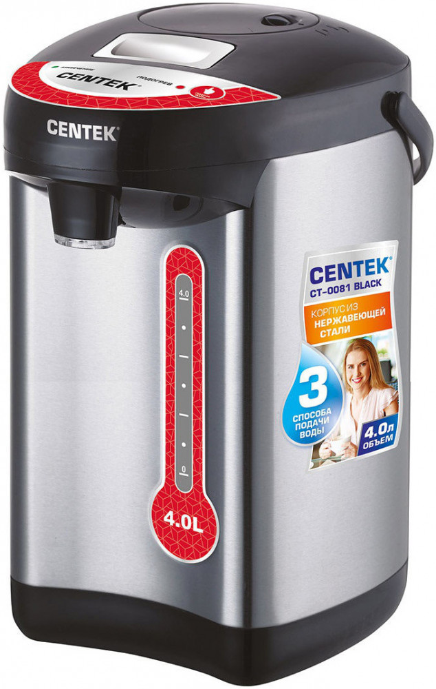 💳 Оплатить за товар можно при получении 🇰🇿 Есть бесплатная доставка по Казахстану от 1 дня 🎁 Копите бонусы с каждой покупки Электрический чайник-термос (термопот) Centek CT-0080 нагревает воду и затем автоматически поддерживает ее горячей, экономя электроэнергию, воду и ваше время. Внутренняя камера и корпус термопота выполнены из долговечной и безопасной нержавеющей стали. Подача воды осуществляется 3 способами: нажатием на кнопку, нажатием на рычаг чашкой и с помощью механического насоса. Объем камеры — 3 литра. В термопоте предусмотрена шкала уровня воды. Прибор имеет функции защиты от включения без воды и защиты от перегрева, безопасную систему блокировки. Термопот оборудован вращающейся подставкой, удобной ручкой для транспортировки и имеет LED-индикаторы работы. Прибор удобен в использовании и прост в уходе. |