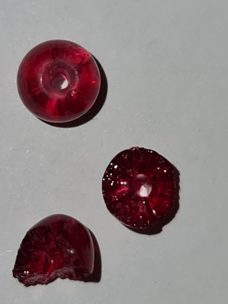 Одна бусина расколотая, другая - круглой формы. На 49 бусин две с браком - неплохо