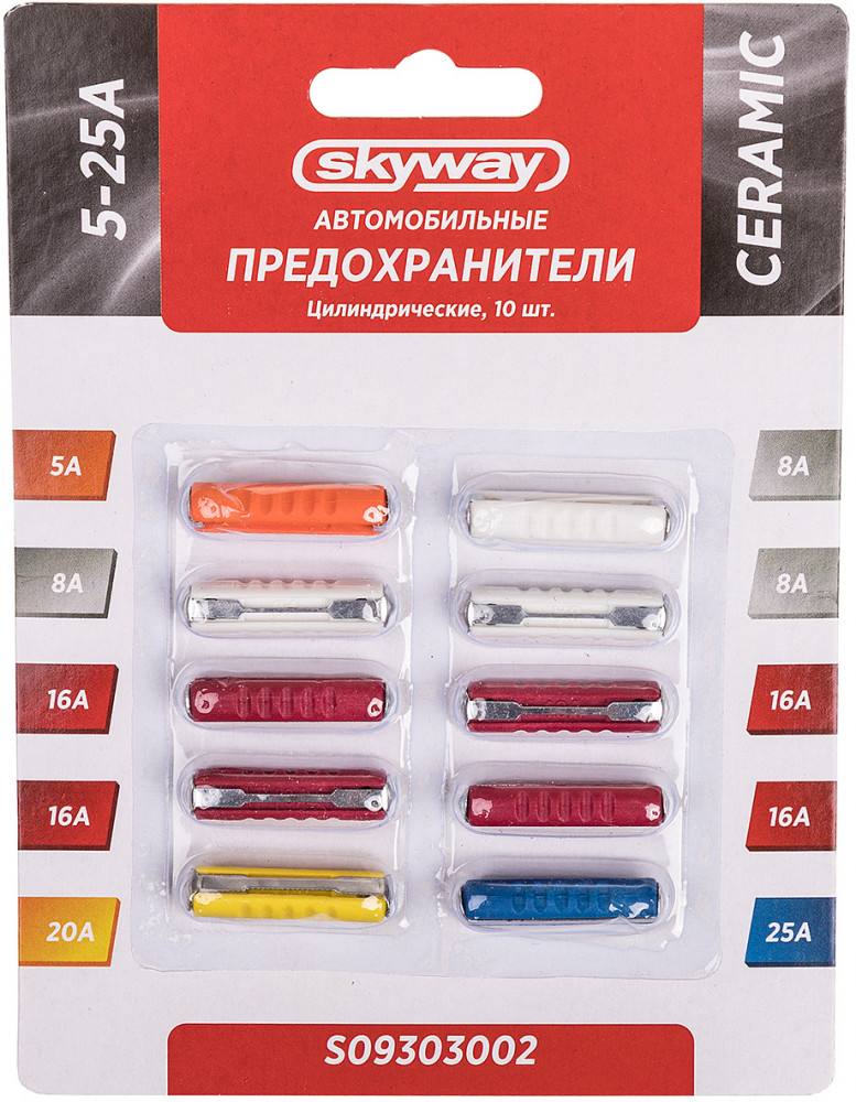 Предохранитель керамический цилиндрический набор 5-25А блистер. Предохранители используются в качестве дополнительного средства защиты устройства или оборудования постоянного и переменного тока, обеспечивая индивидуальную защиту компонентов или внутренних схем. Срабатывание вставки приводит к перегоранию плавкого элемента и разрыву защищаемой электрической цепи. После этого плавкую вставку необходимо заменить.