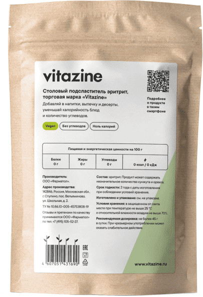 Vitazine Подсластитель столовый «Эритрит»-20% +104