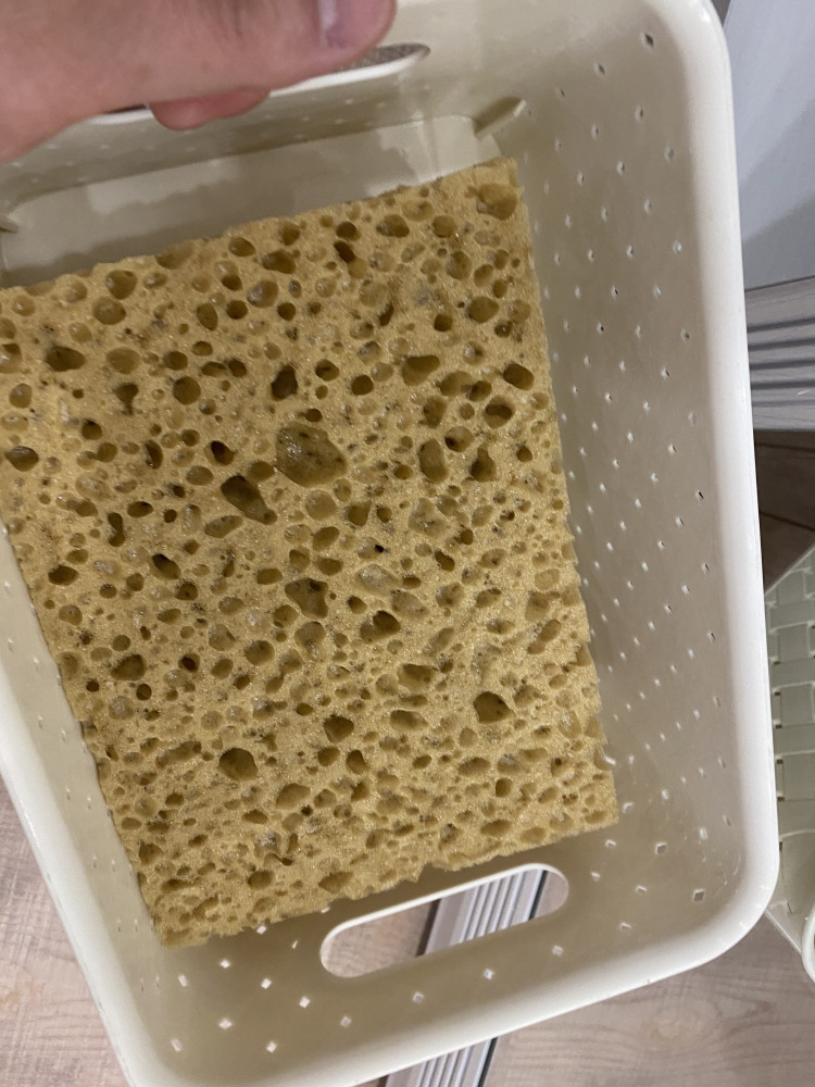 Губка огромная, вот на фото видно, очень мне понравилась, нарезал несколько кусочков для разных целей. Однозначно рекомендую.