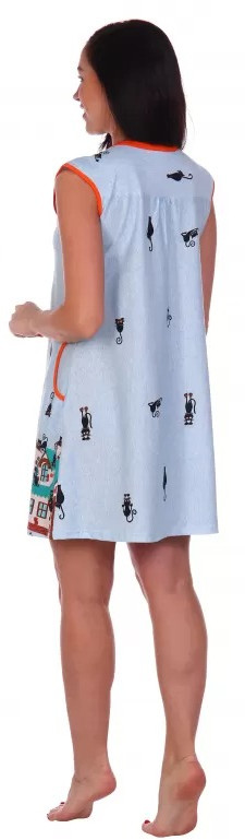 Хороший летний халатик, яркий, красивый. На свой 46-48 взяла размер 48. Отлично подошел, свободно сидит, как раз для дома удобно. Молния немного грубоватая, надеюсь, что со временем станет мягче. На мой рост 160 халатик по колено.