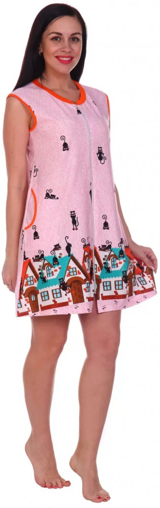 Хороший летний халатик, яркий, красивый. На свой 46-48 взяла размер 48. Отлично подошел, свободно сидит, как раз для дома удобно. Молния немного грубоватая, надеюсь, что со временем станет мягче. На мой рост 160 халатик по колено.