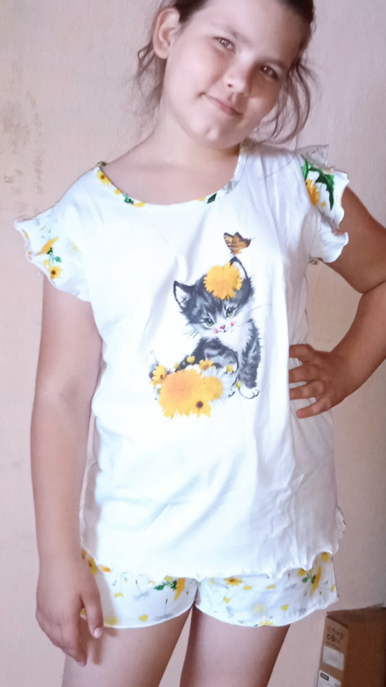 Классная пижамка! Яркий принт, натуральная ткань, аккуратно сшито. Рисунок при стирке не полинял. Дочке очень понравилась обновка!