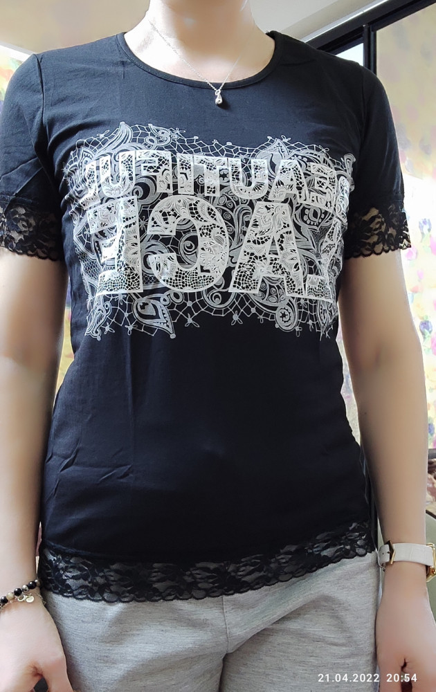Классная футболка подойдет как с юбкой так со штанами, гипюр и трикотаж хорошего качество,размер соответствует реальному размеру, рекомендую !