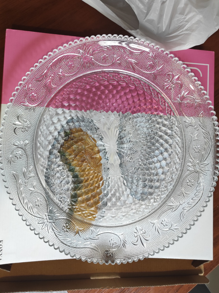 Блюдо понравилось,хоть торт положи,хоть мясную закуску,хоть что ещё и красивое прочное стекло. Даже в руках приятно подержать,упаковано в красивую коробочку, на подарок ОК. Спасибо Flip.