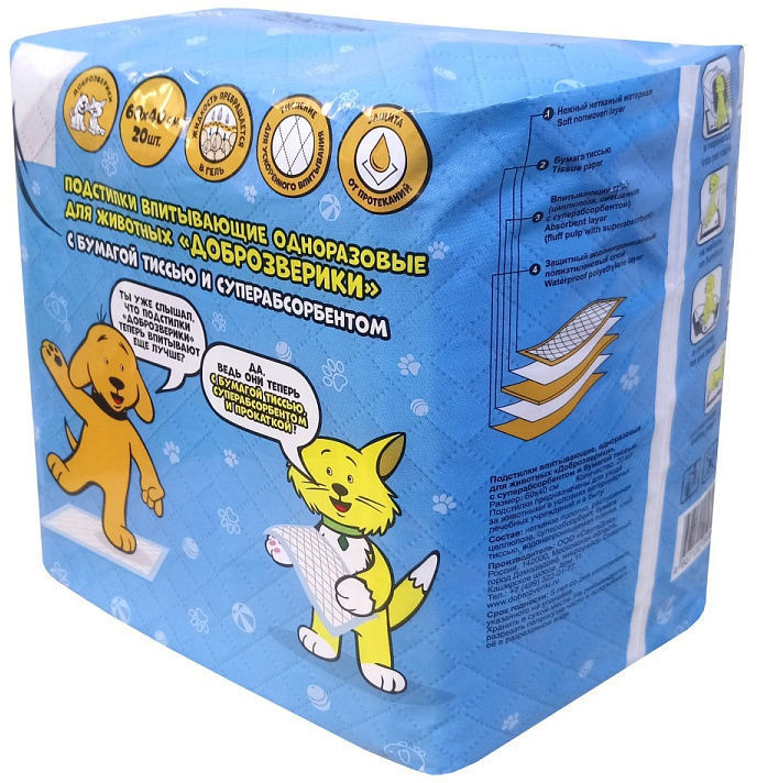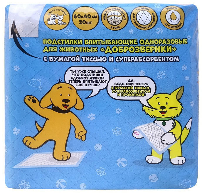 Доброзверики Подстилки впитывающие для животных с суперабсорбентом-20% +86