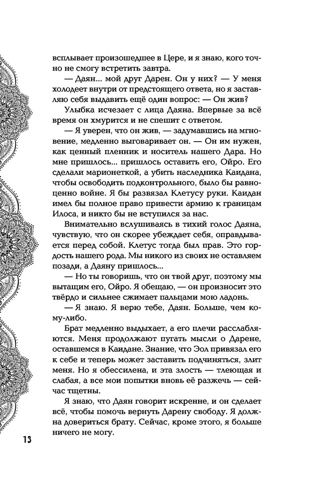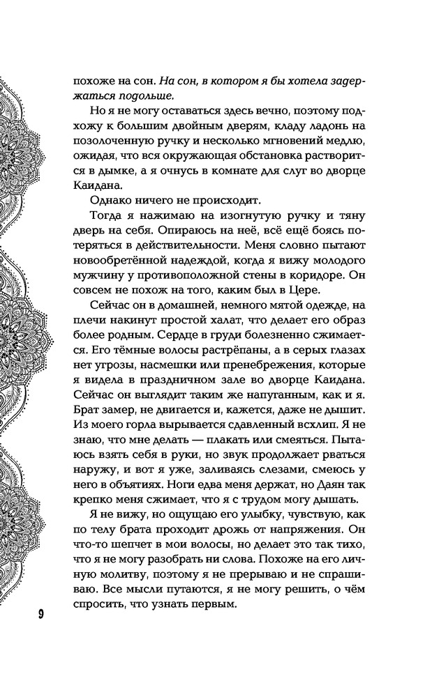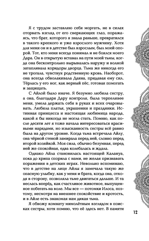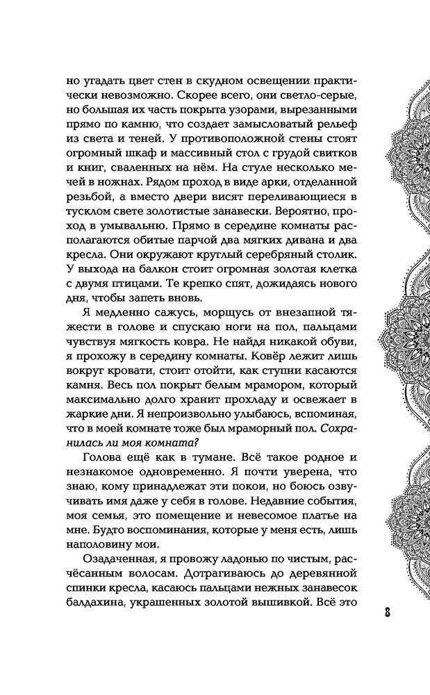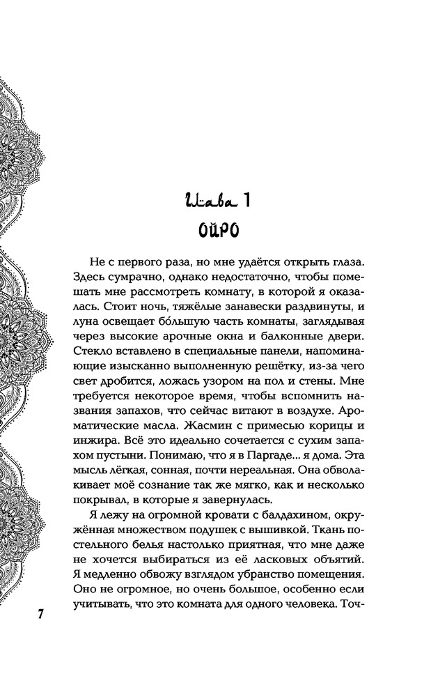 Если сказать, что много надежд я возлагала на эту книгу - ничего не сказать. Мое мнение субъективно. + Красивая обложка. Нет. Великолепная + Карта и семейное древо - Очень медленный сюжет с нудными описаниями внешности, нарядов, дворца на 300 страниц. На минутку, в книге их 444. Думала, хуже быть не может. Может Вопрос: Зачем описывать персонажей вплоть до каждой прядки, узоры на одежде, загогулины в интерьере? Видимо, это несет глубокий скрытый смысл. Глупым не понять - Плоские персонажи. Они серые, безликие, неинтересные. Если убрать их имена, то невозможно понять, кто сказал ту или иную фразу. - Куча способностей и скрытых даров, в которых путается сама автор и путает читателей. - Маленький мир. Все расположено на одном континенте, а климат разный. - Радужно - облачковый мир. Все любят друг друга до потери пульса. Даже их служанки (штук пять, и у каждой есть своё имя. И цвет глаз;) аж плачут постоянно и обнимаются. Все всем доверяют, бедных нет, а проблемы решаются взмахом волшебной палочки. Ну или пером автора. Персонажи вечно ранены до полусмерти, но смысл беспокоиться за них, если гг регенерирует, а остальным даёт попить своей крови Вывод: Был потенциал, но автор решила издать сырой текст без детальной проработки. Финальный твист вовсе не твист. Всех и так ждёт хэппи-энд и романтик