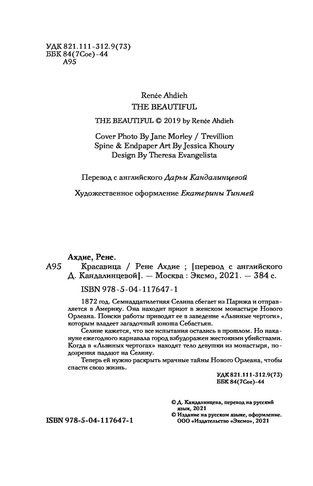 КрасавицаВ данный момент этот товар отсутствует в продаже. Возможно, у нас найдется аналогичный или похожий товар здесь. Серия: Сумеречная жажда 1872 год. Семнадцатилетняя Селина сбегает из Парижа и отправляется в Америку. Она находит приют в женском монастыре Нового Орлеана. Поиски работы приводят ее в заведение «Львиные чертоги», которым владеет загадочный юноша Себастьян. |