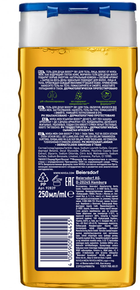 NIVEA Гель для душа «Boost» 3 в 1 для тела, лица и волос, 250 мл