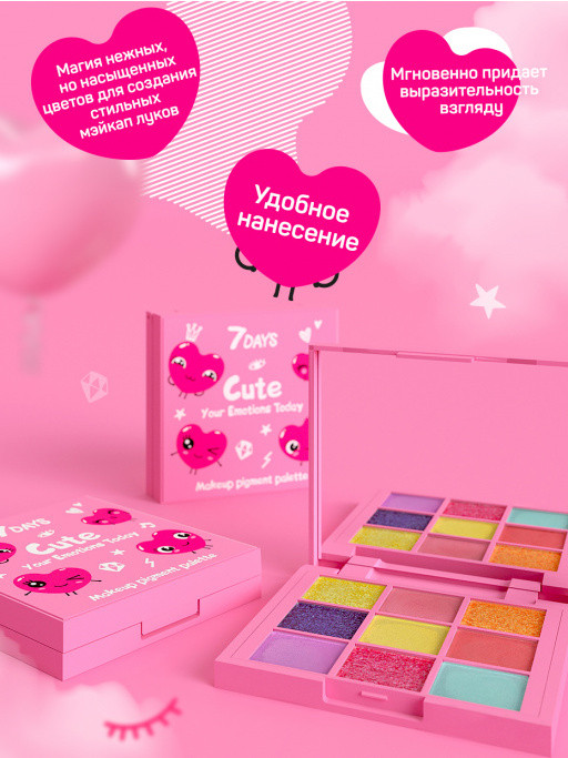 7Days Палетка пигментов для макияжаВ данный момент этот товар отсутствует в продаже. Возможно, у нас найдется аналогичный или похожий товар здесь. Серия: Cute Магия нежных, но насыщенных цветов для создания стильных мэйкап луков. Удобное нанесение. Мгновенно придает выразительность взгляду. Палетка пигментов 7Days Your Emotions Today, состоящая из 9 оттенков, подходящих как для создания естественного, так и креативного мэйка поможет тебе проявить их яркость и выразить свой сегодняшний муд. |