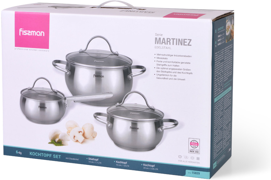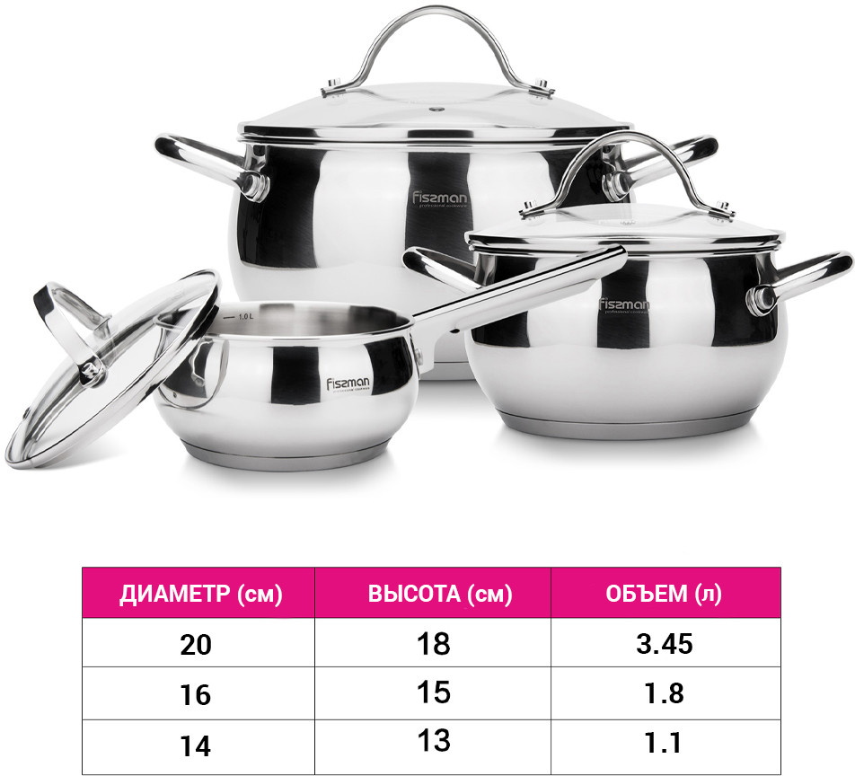Fissman Набор кастрюль с крышками из нержавеющей стали «Martinez»-35% +1249 нержавеющая сталь красивый дизайн пятна малый объем