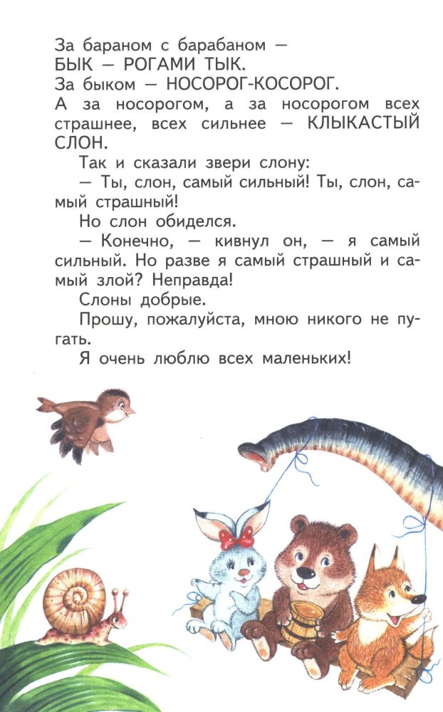 Отличная книга - хорошее качество (твердый переплет, белые плотные страницы), очень доступная цена. В книгу входят 28 рассказов, в основном про животных. Каждое, хоть и небольшое произведение, несет в себе определенный смысл. Иллюстрации - просто замечательные, добрые, очень красочные, на каждом развороте.