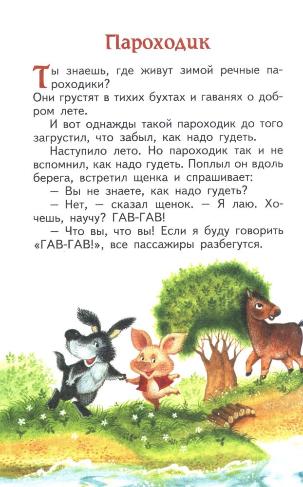 Кто кого добрее Пароходик Облачковое молочко Жил на свете слоненок Одинокий ослик История про поросенка Надо подумать Теленок "Ах, ах!" Китенок Про слоненка и медвежонка Как отдыхает подъемный кран Паровозик из Ромашково Разноцветный жираф Сказка Месяц Пугало Когда не хватает игрушек Глупый лягушонок Колокольчик ослика Петушок и солнышко Лягушонок-пекарь Паровозик Чу-чу Пушистый барашек Облака Сладкий домик Мишкина труба Живой мотоцикл