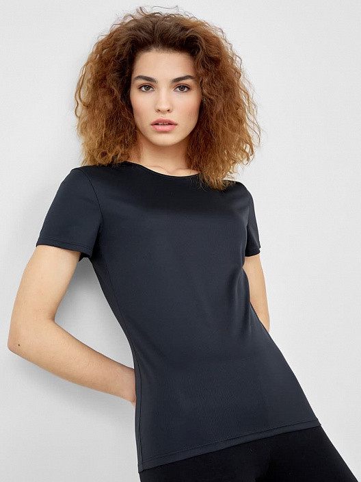 Футболка идёт в размер. Материал приятный, дышащий, похож на вискозу. Вещи из синтетики я не люблю - предпочитаю натуральные ткани - а тут вещь приятно удивила. Летом тело будет дышать. Рекомендую к приобретению