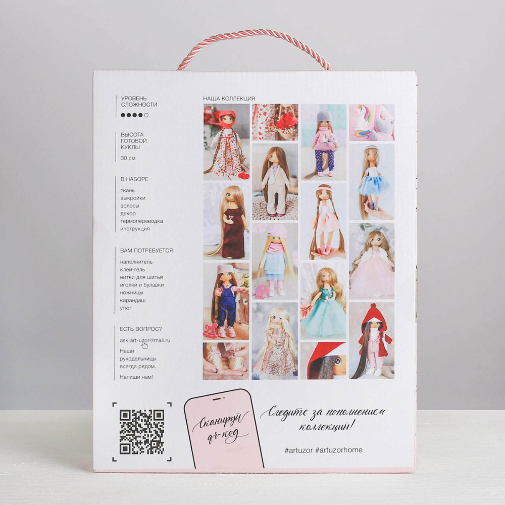 В состав набора входит: подробная пошаговая инструкция, выкройка куклы в натуральную величину, трикотаж для пошива тела куклы, лоскуты ткани для пошива одежды,искусственная кожа для изготовления обуви, волосы-трессы, термопереводка, декоративные элементы. |