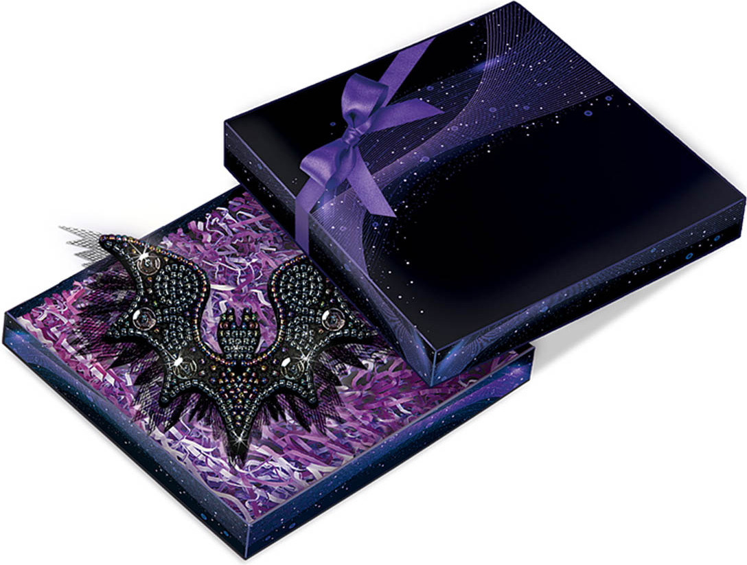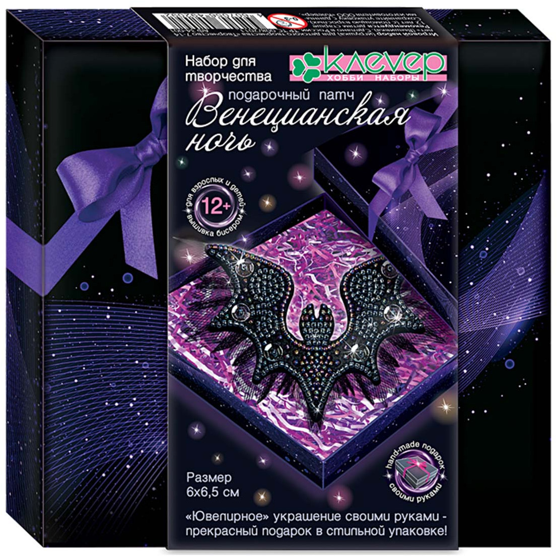 Патч «Венецианская ночь» сделан в виде силуэта летучей мыши, он украшен бисером и фатином. Создание этого украшения можно доверить подросткам от 12 лет или взрослым. Упаковать подарок легко: в комплект входит яркая коробочка с цветным бумажным наполнителем.