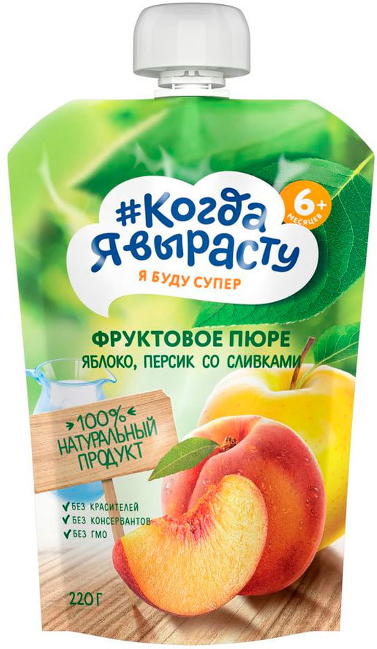 Когда Я вырасту Пюре для детей «Яблоко, персик и сливки»