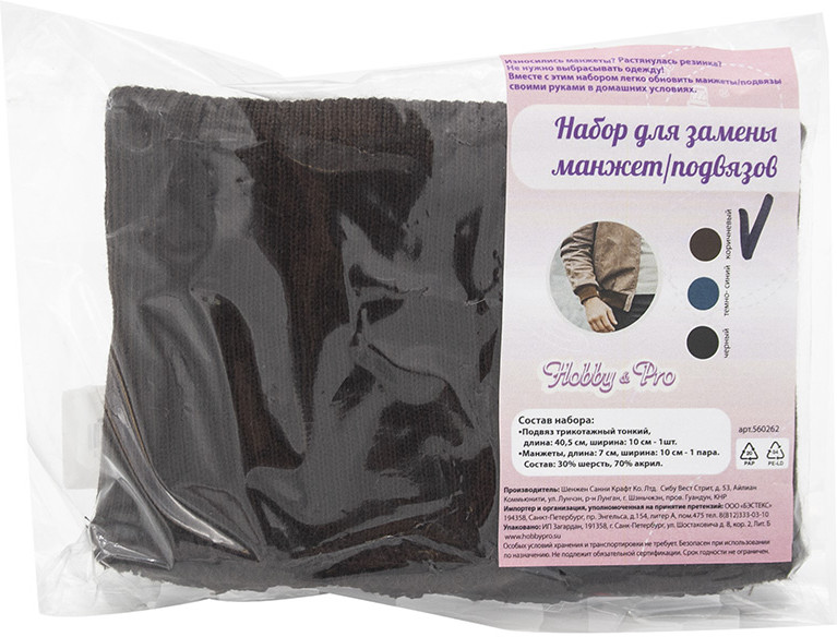 подвяз — 40,5 × 10 см; манжеты — 7 × 10 см