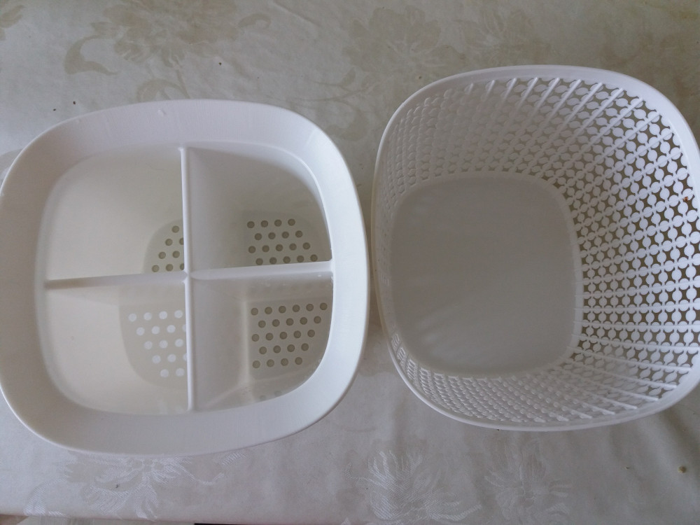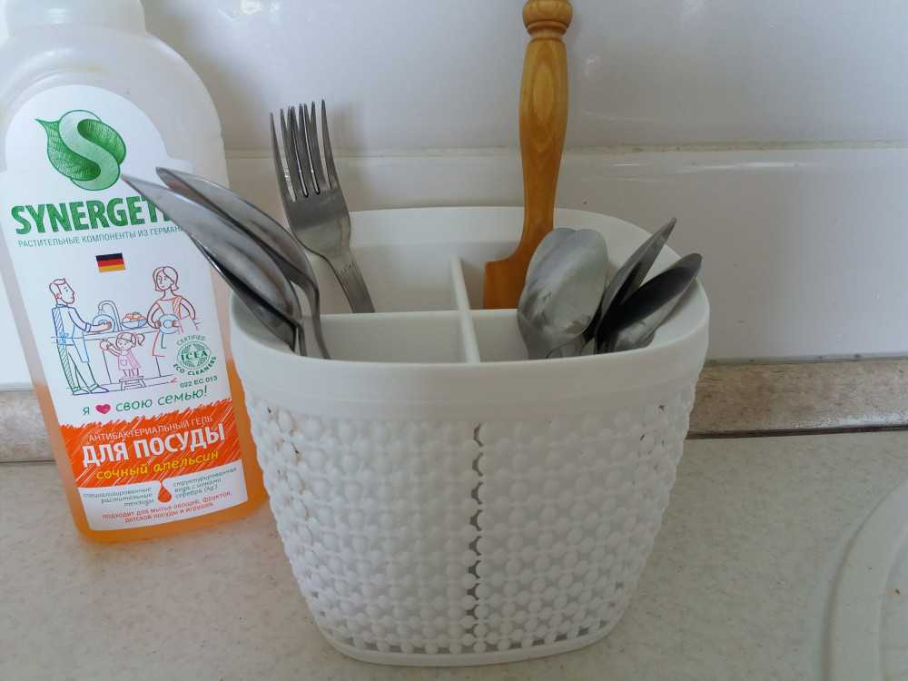 Отличная сушилка. Беленькая, ажурная, вместительная. Больше всего мне понравилось, что маленькие чайные ложечки никуда не проваливаются, так как это отделение приподнято по сравнению с остальными.
