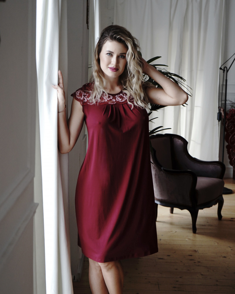 Сорочка просто Супер.Сначало заказала синюю а позже сообщили о поступлении бордовой.Заказала не задумываясь и бордовую.Нежные приятные телу.Размер соответствует.