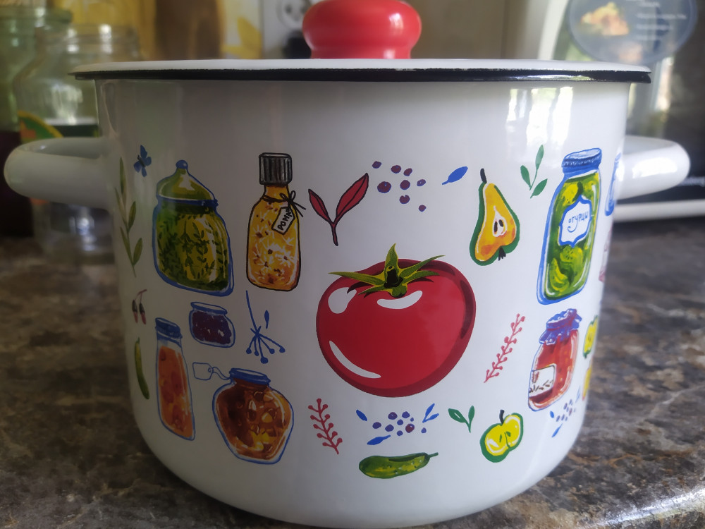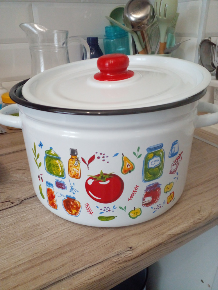 отличная кастрюлья 7 литров для супов для семьи само то. Пришел в отичном состоянии, без сколов без царапин. как на картинке , очень красивая .готовить одно удовольствие
