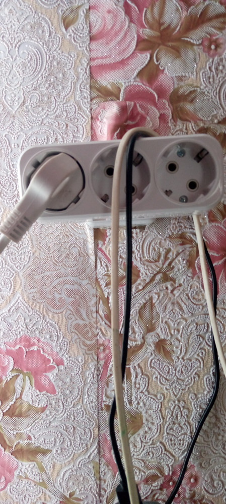 Тройник , удобный для меня, потому что вилка самого тройника вдоль. С другими конфигурациями не подходит , потому что сверху столик впритык, над розеткой. Иногда бывает, что с толстыми вилками невозможно использовать тройники. В этот тройник помещаются вилки разной толщины.